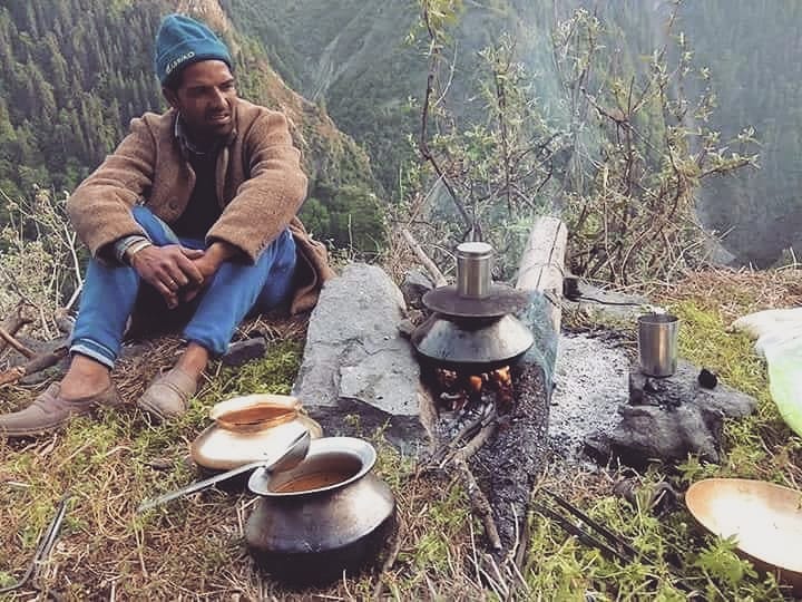 Breakfast time for Shepherd in hills