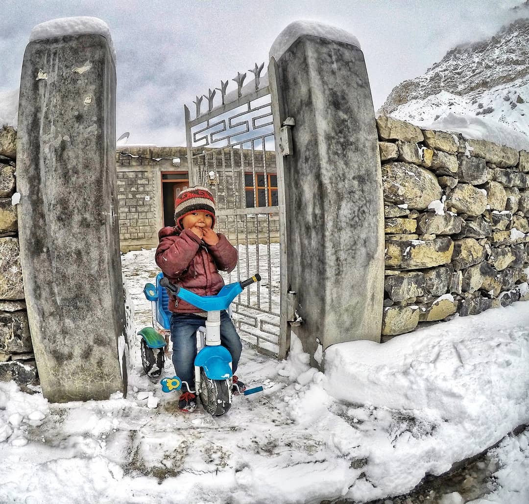 Lahaul and Spiti - cute little boy playing in the snow